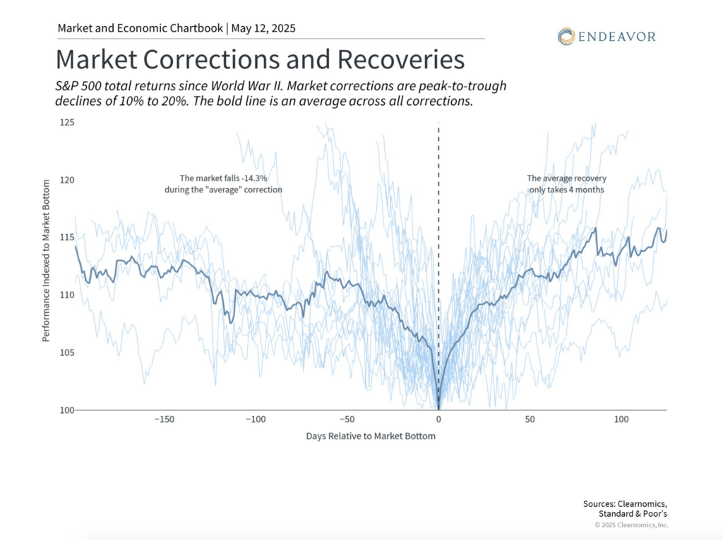 Markets are close to where they started the year and slightly above their pre-April 2 tariff announcement levels. This is a pattern that follows many other historical examples in which recoveries can occur once there is greater clarity. Recent events are another reminder that maintaining a long-term investment perspective is important during periods of uncertainty.