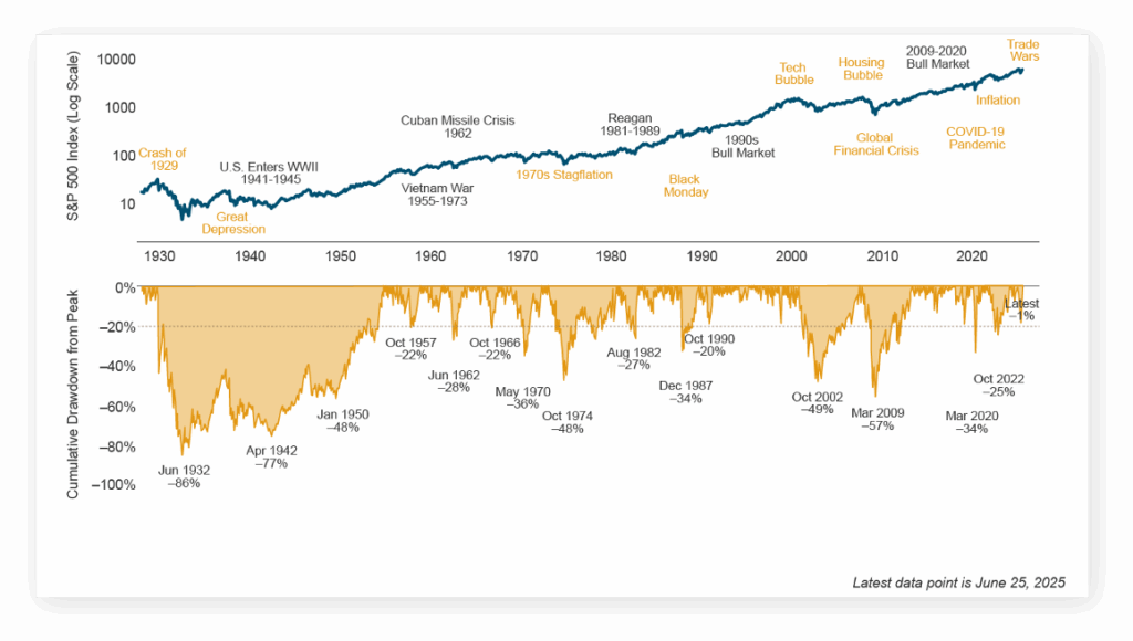 Investing in the market is inherently risky, but it’s a risk that has historically been rewarded. Aligning equity exposure with long-term goals, rather than reacting to short-term headlines, is the foundation of a durable investment strategy. The historical record is clear: The patient investor, committed to a disciplined plan, reaps the reward of long-term growth.